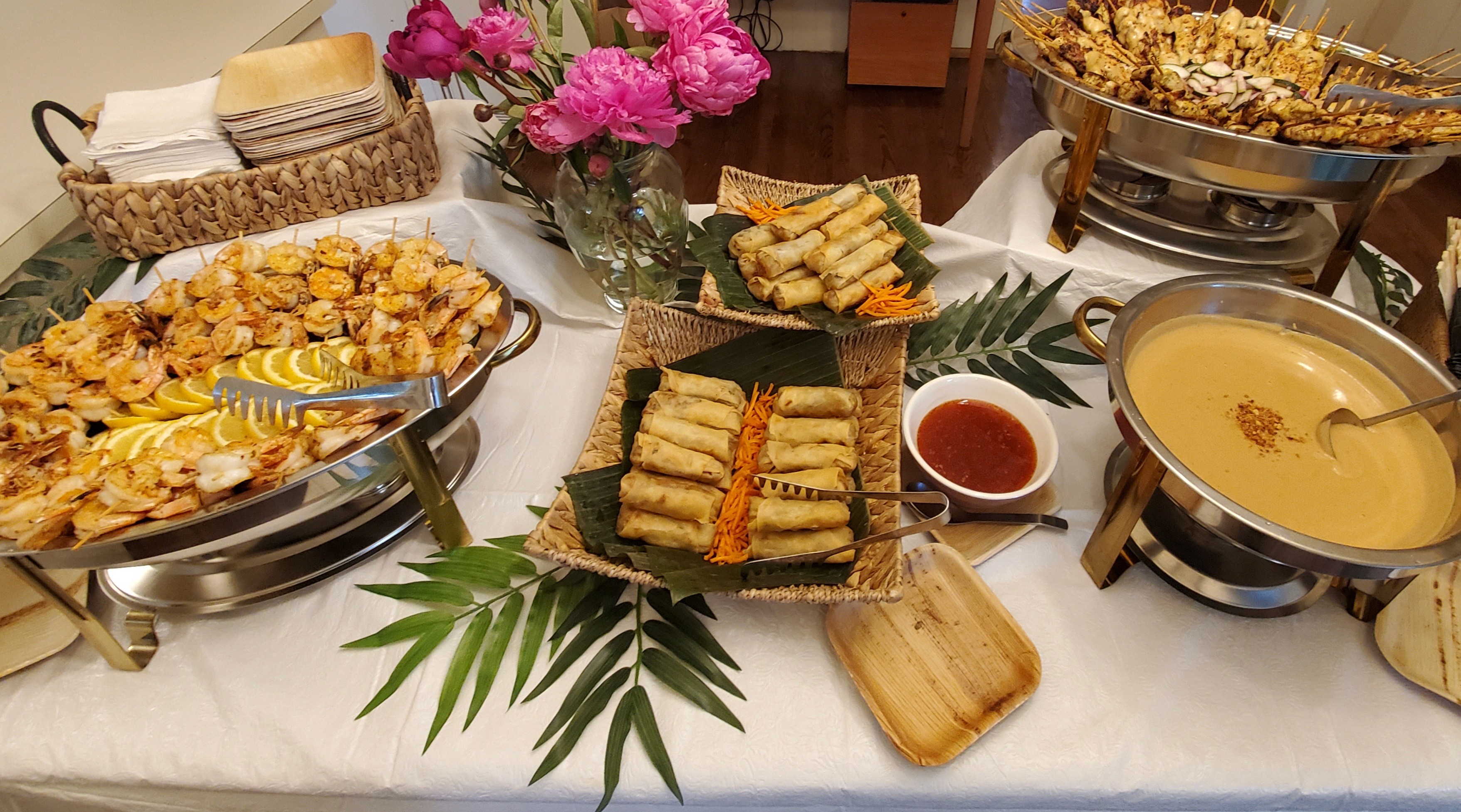If your gathering is more casual or you are on a tight budget, you can order all disposable trays to set your own buffet without our service team. (Order now tab) Need individually boxed lunches instead of a shared buffet? We offer that as well, just ask us for more details in the inquiry form.